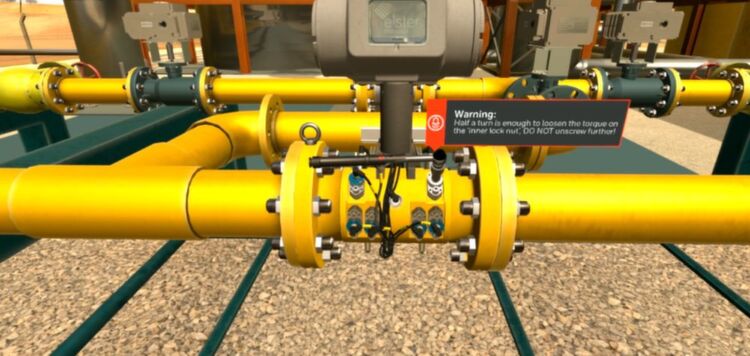 Elster Ultraschall-Modul zur Durchflussmessung in VR Mehrwege-Ultraschall-Durchflussmesser sind inzwischen etabliert bei der Durchflussmessung in großen Pipelines, speziell bei eichpflichtigem Transfer von Erdgas. Für diesen Trend gibt es mehrere Gründe – herausragende Messgenauigkeit, breiter Messbereich, gute Beständigkeit gegen Einbaueffekte sowie Kosteneffektivität. So gut diese Messgeräte auch sind, wie alle Messgeräte werden sie dennoch von den Bedingungen in ihrer Umgebung beeinflusst. Eine seltene aber wichtige Wartungsaktivität für das Messgerät ist die interne Reinigung eines oder mehrerer Ultraschallwandler infolge zunehmender Verschmutzung durch Schwarzpulver. Zur Reduktion von Stillstandszeiten werden die Messgeräte mit einer Wechselarmatur zum Austausch der Umwandler im laufenden Betrieb geliefert. Das trägt zu erheblichen Einsparungen bei, da die Leitung für die Wartung nicht druckfrei gemacht werden muss. Allerdings verfügt auch hier das Feldpersonal über sehr wenig praktische Erfahrung für diese Aufgabe. Honeywell entwickelte daher auf Basis eines Q.Sonic Mehrwege-Ultraschall-Durchflussmessers eine simulierte virtuelle Realität für eine im Betrieb befindliche Pipeline, um damit das Feldpersonal bei der praktischen Durchführung der Aufgaben in einer sicheren Umgebung zu schulen. Dadurch wird die jeweilige Tätigkeit im Feld schneller und sicherer.