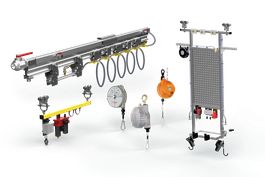 - Werkzeugträgerwagen: Vormontierte, höhenverstellbare Wagen zur Aufnahme mehrerer Werkzeuge und Zubehörkomponenten, auch bei niedriger Deckenhöhe einsetzbar.