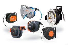 - Aufroller (Federtrommel-Aufroller): Mit Sperrklinke zur Arretierung der gewünschten Auszugslänge. Ideal für Werkstätten und Servicebereiche zur Versorgung von Handwerkzeugen und mobilen Geräten mit Strom, Druckluft oder Wasser.