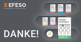 Wir freuen uns über die erneute Spitzenplatzierung als Deutschlands führende Beratung in der Disziplin „Engineering & Production“ in der Branchenstudie „Hidden Champions des Beratungsmarktes“. Zum sechsten Mal in Folge zeichneten die Studienteilnehmer EFESO mit dem Qualitätssiegel aus, so dass wir mit der Studienausgabe 2026/27 den ersten Platz in dieser Beratungsdisziplin seit 2015 halten.
