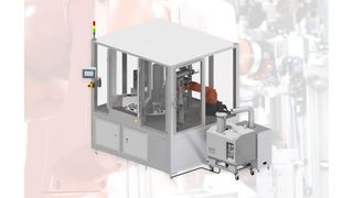 Halbautomatische Klebeanlage mit IO-Link-Sensorik