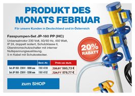Produkt des Monats Februar 2026: Fasspumpen-Set JP-160 PP (HC) für leichte Säuren und Laugen