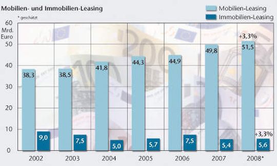 In diesem Jahr ließen sie die Zahl der bestehenden Verträge um 1,7 Mio. Neuverträge wachsen. Dank der breiten Akzeptanz für Leasing erwartet die Branche für 2008 ein Wachstum von 3,3%. Das entspricht einem Neugeschäftsvolumen von 57,1 Mrd. Euro.