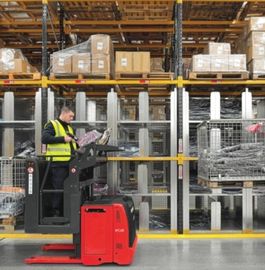 Um konzentriert und produktiv kommissionieren zu können, benötigen Menschen ergonomische und komfortable Arbeitsplätze. Darauf ist jedes Detail der Konstruktion dieser Kommissionierer ausgelegt: Der niedrige Zugang entlastet die Beine beim Ein- und Ausstieg, durch Gummilager vom Chassis entkoppelte Plattformen mit rutschsicheren Fußmatten dämpfen Erschütterungen und die Steuerung erfolgt leichtgängig über ergonomisch angeordnete und geformte Bedienelemente. Wenn sinnvoll kann der Fahrer die Fahrzeugfunktionen von zwei Positionen aus steuern. Die Modelle für das Arbeiten in höheren Ebenen verfügen zudem über große Kabinen mit niedriger Brüstung und seitlichen Neigeschranken. Am Ende ist das Arbeiten in großer Höhe genauso einfach und sicher wie auf Fußbodenhöhe.