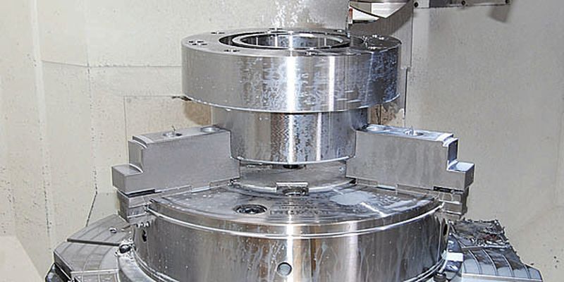 Mit nur zwei schnell realisierbaren Aufspannungen können die bis zu 550 kg schweren Rohteile mit den Duro-T-500 des Spezialisten Röhm zu präzisen Gleitlagern, Flanschen und Spiraldichtungen für leistungsstarke Pumpen (siehe Kasten) bearbeitet werden. Durch den Einsatz des Spannfuttersystems bei den Dreh-, Fräs- und Bohroperationen ist die Fertigungszeit der Werkstücke außerdem um über 30 % gesunken. Der Transportaufwand zwischen mehreren Maschinen kann komplett entfallen.