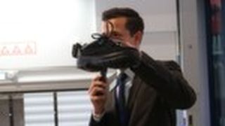 Arbeitsschuh spricht mit Biegemaschine