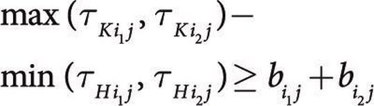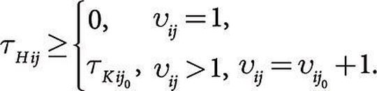 Wenn die Größen τ? ij und τ? ij die Bedingung (3) erfüllen, dann bestimmen die Matrixelemente τ den optimalen Fertigungszeitpunkt der Arbeitsplätze, weil die Teilelose ununterbrochen bearbeitet werden und jeder einzelne Arbeitsschritt zum optimalen Zeitpunkt innerhalb der betrachteten Periode beginnt.