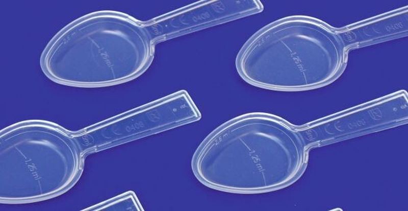 Messlöffel dienen zur Dosierung flüssiger Substanzen wie Antibiotika oder Hustensaft und werden den jeweiligen Verpackungsbehältern beigegeben. Sie bleiben bis zu deren Leerung in Verwendung, sind demnach auf die spezifische Anwendung abgestimmte Einwegprodukte, die in großen Stückzahlen produziert werden.