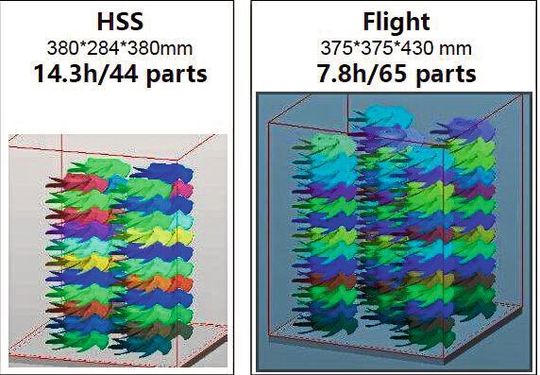 Bei der von Farsoon entwickelten Flight oder Faser Light Technik handelt es sich um ein Verfahren des selektiven Lasersinterns (SLS). Die Anlage arbeitet mit 500-W-Faserlasern, von denen sich der chinesische Hersteller eine länger Lebensdauer als bei CO2-Lasern verspricht sowie mehr Leistung und mehr verarbeitbare Materialien. Derzeit ist allerdings nur ein PA 12, das von Farsoon selbst verkauft wird, für diese Laserleistung geeignet. An weiteren Materialien wird geforscht.