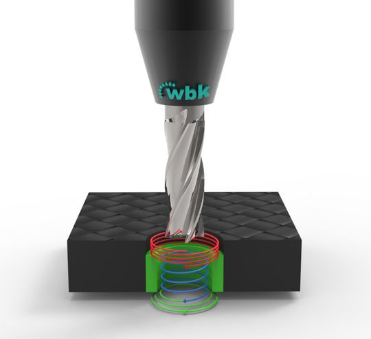Eines der Hauptziele bei der Entwicklung neuer Fertigungsverfahren ist die Reduzierung von Schäden an Faserverbundkomponenten. Dazu dient die Betrachtung der bei der Zerspanung entstehenden Kräfte und deren Richtungsvektoren [4]: Mit einer gezielten Steuerung der Prozesskraftrichtungen kann das Bearbeitungsergebnis deutlich verbessert werden. Das Taumelfräsen lässt sich dazu als ein fünfachsiger Bohrvorgang nutzen, bei dem die Prozesskraft an beiden Decklagen ins Werkstückinnere gerichtet wird [5].