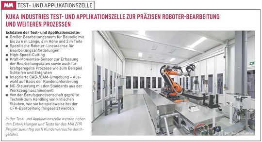 „Ausgehend vom aufgebauten Know-how und den Entwicklungen aus unseren Forschungs- und Technologieprojekten können wir die optimale Lösung in Form von Bearbeitungszellen und auch Gesamtanlagen für unsere Kunden realisieren“, sagt Maresch. „So besitzen wir eine Test- und Applikationszelle im Kuka Maschinenpark, in die die MAI ZPR Entwicklungen eingeflossen sind und auf der wir heute die Entwicklungsarbeiten weiter vorantreiben. Künftig soll sie verstärkt für Kundenbearbeitungsversuche genutzt werden.